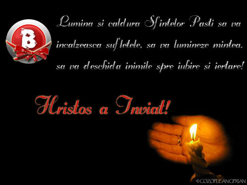 ...voi lipsi cateva zile dar inainte de a pleca, vreau sa va spun inca o data, ca va port in sufletul meu si in gandurile mele mereu si ca voi face asta mai mult ca oricand, in noaptea de Inviere, cand ma voi ruga pentru voi toti, dragi parinti de Ingeri, sa reinvie in sufletele voastre, Speranta si Credinta, pentru a avea puterea de a merge mai departe